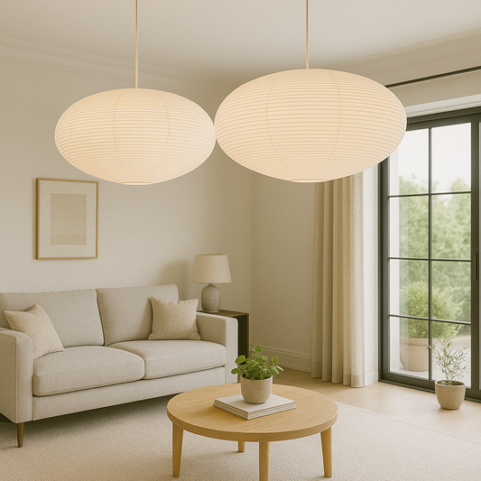 AkariLuxe Pendelleuchte – Elegante Hängelampe aus weißem, geripptem Glas im Japandi Stil